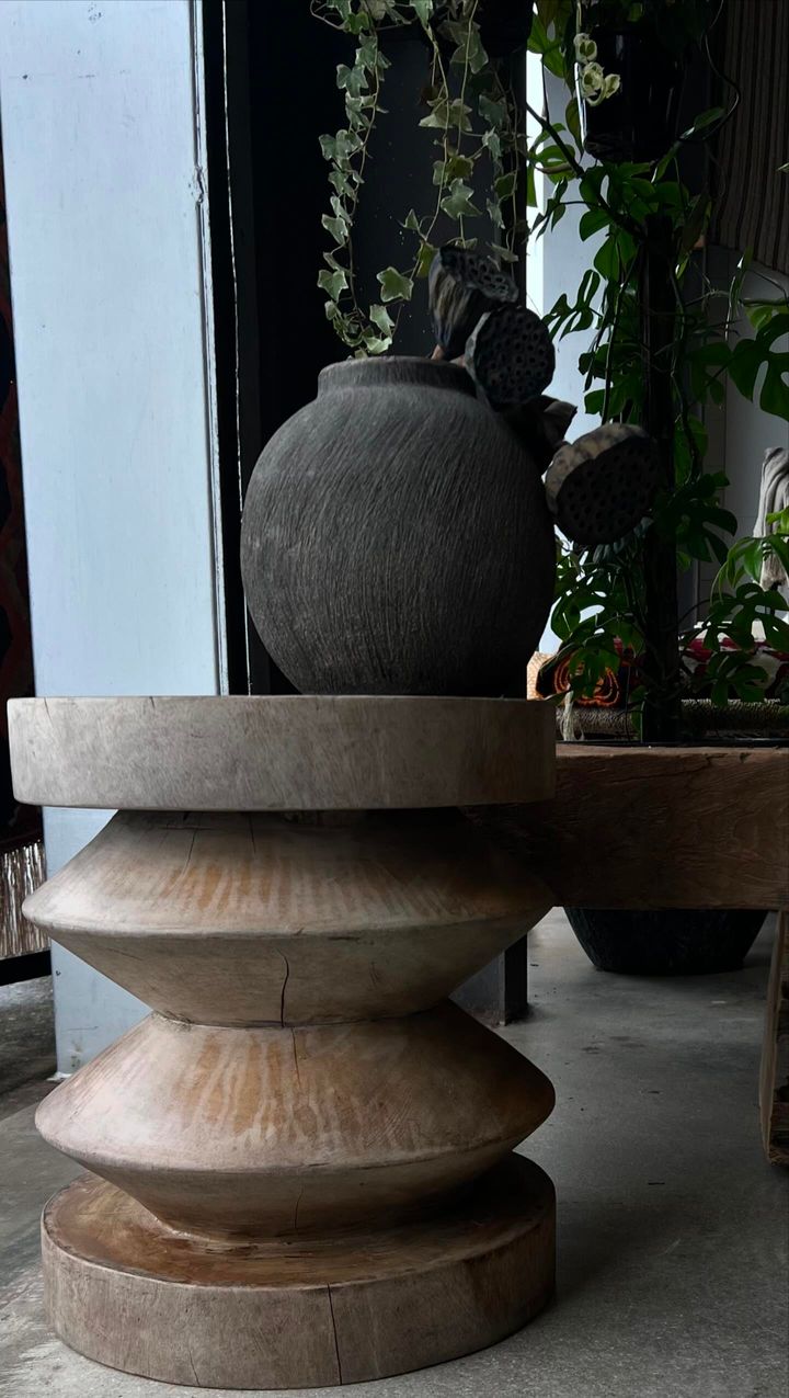 Step into the world of rustic elegance with our Hand-Carved Solid Timber Side Table, a charming addition to any living space.