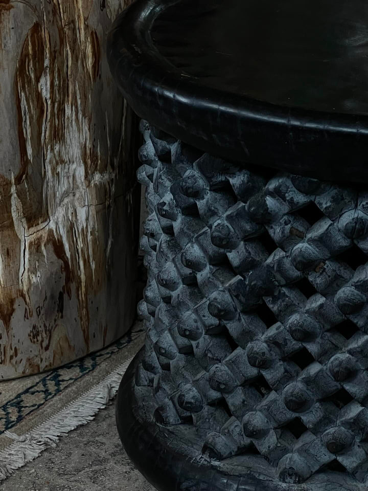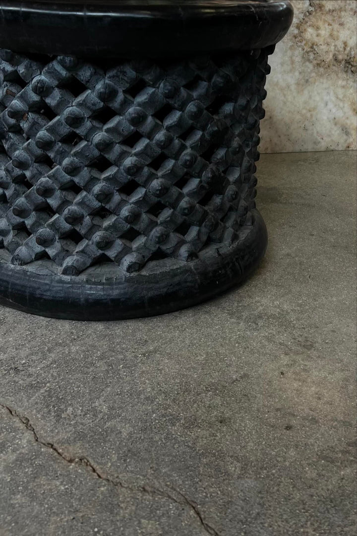 Step into the world of timeless craftsmanship with our Vintage Hand-Carved Bamileke Round Side Table. This exquisite piece of furniture is more than just a table; it's a work of art that adds a touch of cultural heritage and elegance to your living space.